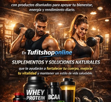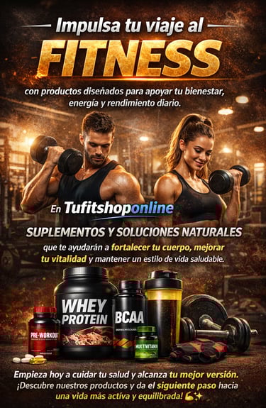 Impulsa tu viaje al fitness con productos diseñados para apoyar tu bienestar, energía y rendimiento diario. En Tufitshoponline encontrarás suplementos y soluciones naturales que te ayudarán a fortalecer tu cuerpo, mejorar tu vitalidad y mantener un estilo de vida saludable.