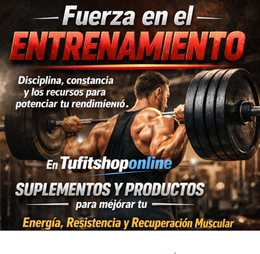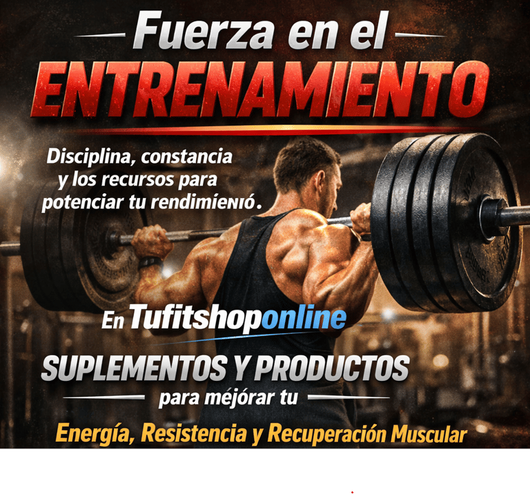 Fuerza en el entrenamiento significa disciplina, constancia y los recursos adecuados para potenciar tu rendimiento. En Tufitshoponline encontrarás suplementos y productos diseñados para ayudarte a mejorar tu energía, resistencia y recuperación muscular, apoyando cada paso de tu progreso físico.